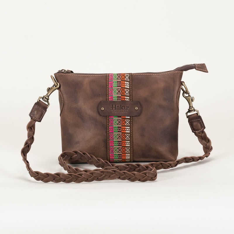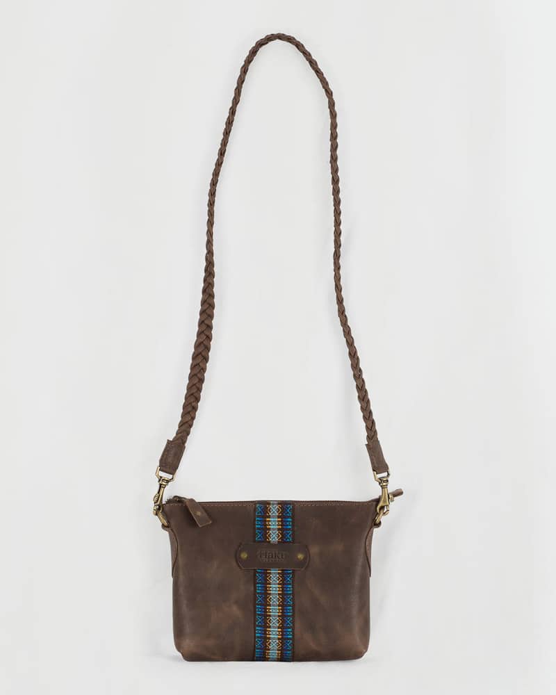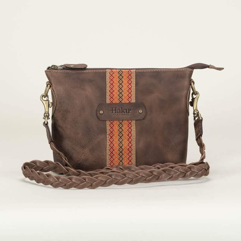 This leather crossbody bag is another Haku icon for its original design. Made from vegetable-tanned leather, the Kipi Andina has a zippered compartment lined with 100% cotton fabric. Inside, it features a pocket that’s ideal for storing keys. The braided leather strap is a work of art, and the woven strap on the front is the highlight of this purse. Elevate your look with a touch of artisanal luxury with this piece.