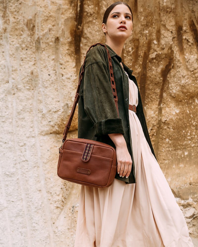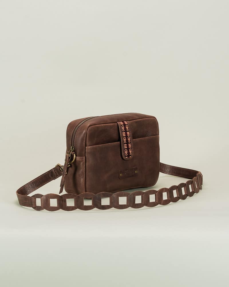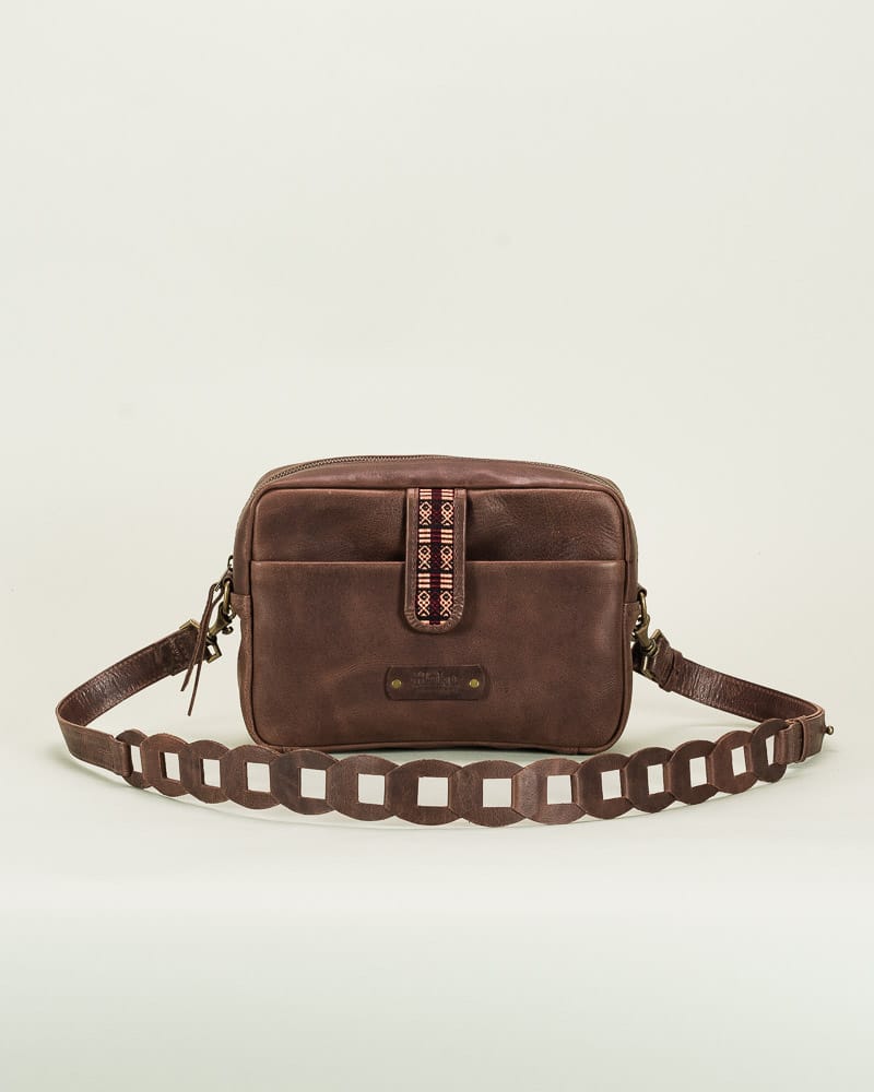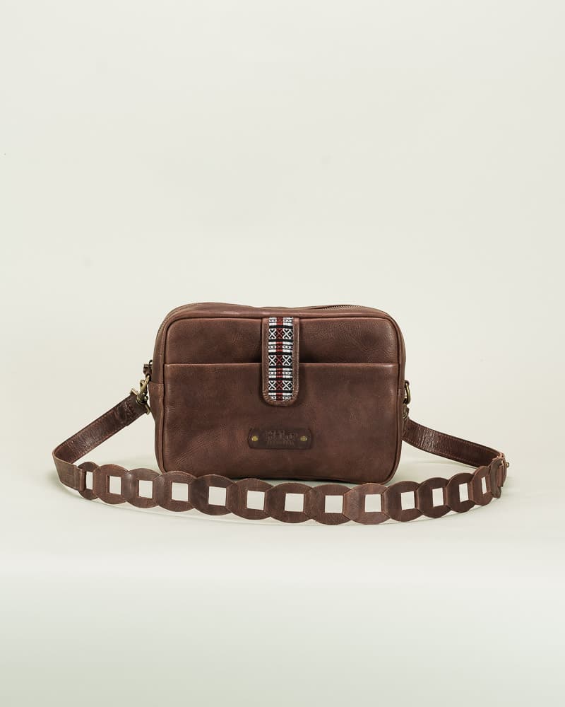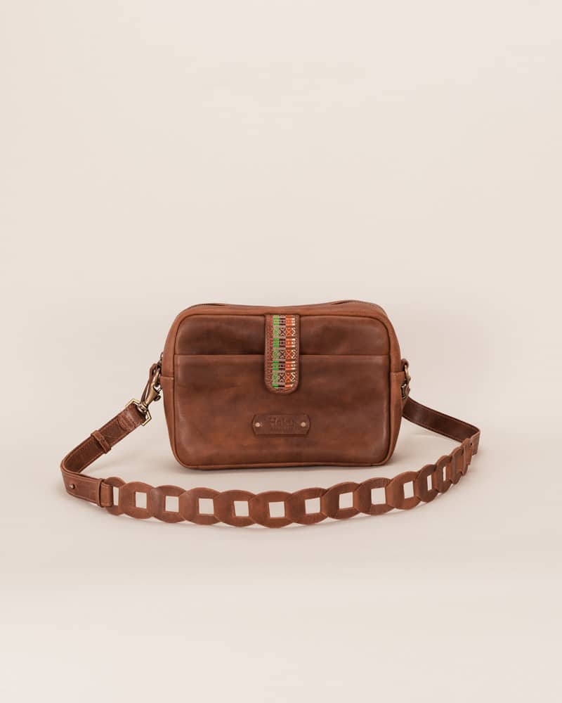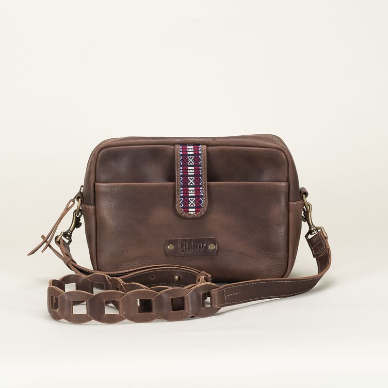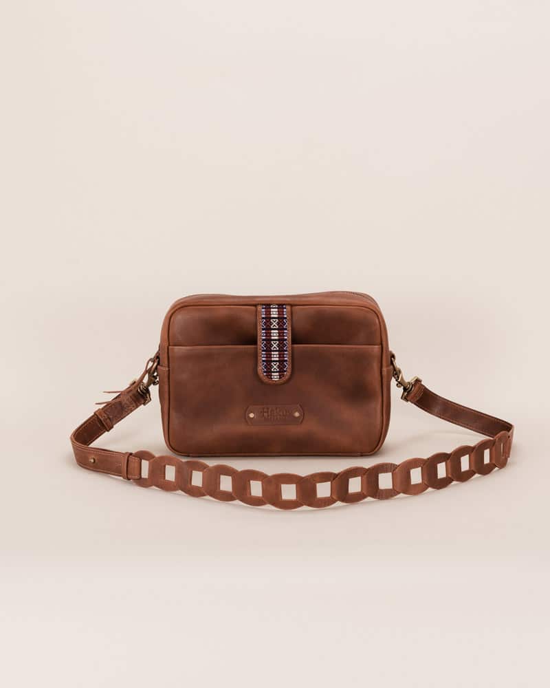 This new leather crossbody bag, which is made of vegetable-tanned leather, has as a front detail a woven strap, that gives it an Andean touch. Moreover, its leather link strap is adjustable and has a unique design. The Wayaka (“bag” in Kichwa) is the perfect size for women who want a spacious purse but not too large. It has a main compartment with a zipper lined in 100% cotton fabric. Inside, there are three pockets: one with a zipper and two open pockets.